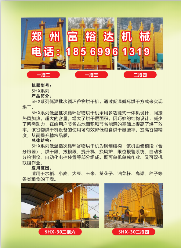 適用物料 : 該機(jī)型的進(jìn)糧口、排糧口、下糧錐、加熱層角狀盒等主要部位均采用GB不銹鋼材質(zhì),以更高標(biāo)準(zhǔn)提升了該設(shè)備的整體使用效果,不加價(jià)讓利客戶,環(huán)保除塵效果達(dá)到國(guó)家二類城市的驗(yàn)收標(biāo)準(zhǔn)等,都是該產(chǎn)品目前在市場(chǎng)競(jìng)爭(zhēng)中具備的中心亮點(diǎn)。組合式烘干機(jī)適宜配備時(shí)產(chǎn)15噸以上的設(shè)備配套,本機(jī)可以和各種物料配套使用,也可以單獨(dú)烘干各種其其他品類的糧食。